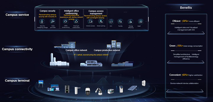 The Huawei Intelligent Campus Strategy integrates multiple layers of security:
